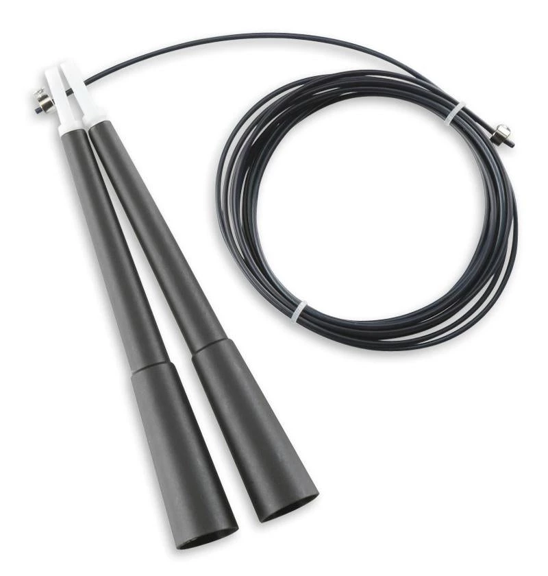 Standard black speed rope. Adjustable, thin cable speed rope.