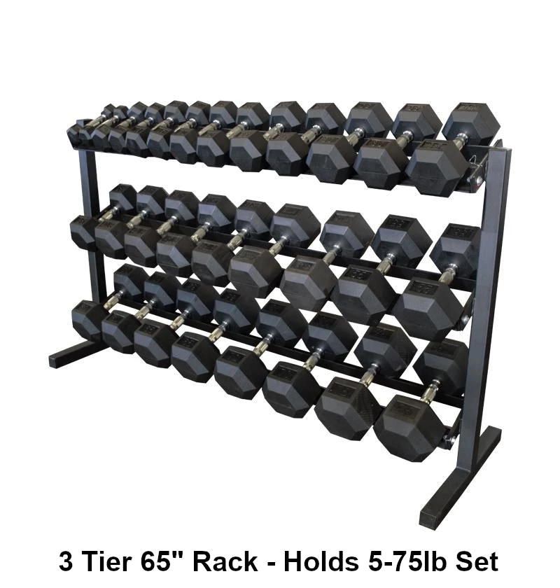5-75lb rubber hex set + 3 tier 65″ Dumbbell Rack
